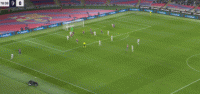 比赛开始前,双方球员正在进场,赛场气氛热烈,观众席上拉起了各自球队的支持横幅,比赛即将拉开序幕。在比赛的第8分钟,巴尔德倒三角回传,奥尔莫包抄打门,但被对手犯规。紧接着的第14分钟,费兰迎来一次单刀机会,凌空打门,然而被埃雷拉出击及时将球挡出底线。在比分固定在1-0之后的第34分钟,穆尼奥斯被教练换下,鲁文-加西亚登场。随后费兰主罚任意球直接攻门,皮球直接砸在横梁上,差之毫厘。